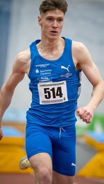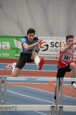Auch Jerome Düringer vom LV 90 Erzgebirge konnte sich für das Finale über 60m Hürden qualifizieren und belegte dort in 8,25s (HF 7,95s PB) Platz 8.