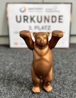 Während der Abschlussveranstaltung in der Max-Schmeling-Halle nahmen Lina Haase und Max Luis Emmrich die offiziellen Urkunden und „silbernen und bronzenen Bären-Pokale“ als Vertreter für ihre Mannschaften auf dem Siegerpodest in Empfang.