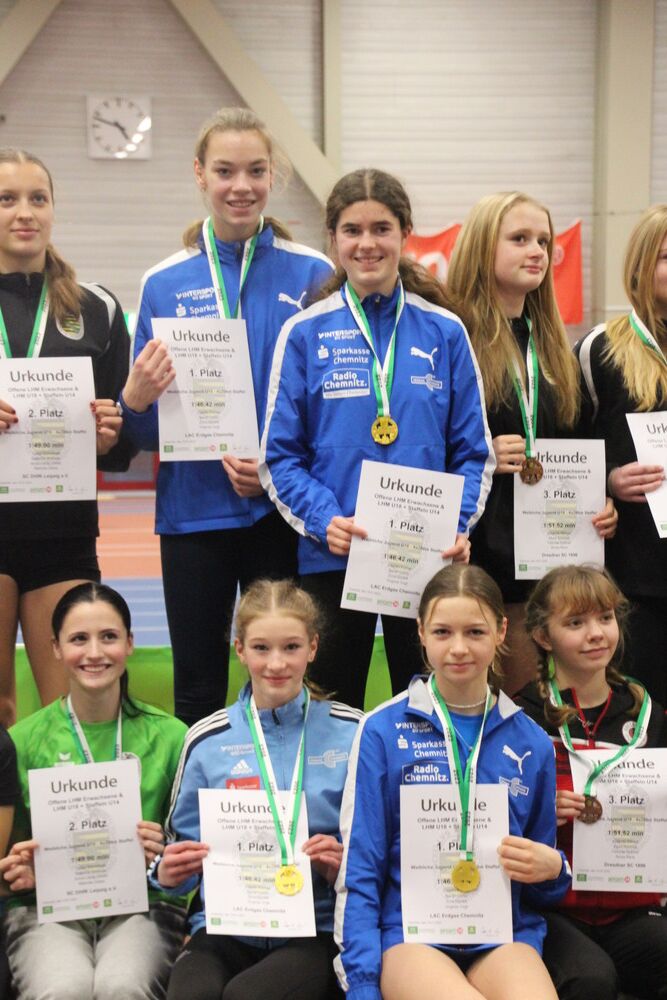 Sensationell Platz 2 und damit Silber erkämpften sich die Mädchen mit Shira Kurzawa, Zora Schlett, Alina Hartnuß, Lina Haase, Virginia Vogt, Helene Deistler, Leni Walther, Emmy Utassy, Melinda Götze, Kristin Tonndorf, Mia Fritz und Helena Bartke. Sie brachten wichtige Punkte in den Disziplinen 100m,