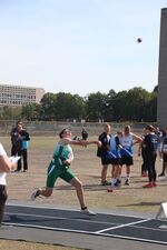 Patricia Beck (8b) sprang mit 1,60m im Hochsprung in der gleichen Altersklasse zu Gold. Im Kugelstoßen wurde sie mit 9,33m Zweite.