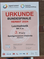 Gleich 3 Mannschaften unseres Gymnasiums holten sich in Mittweida die "Fahrkarten" zum Bundesfinale 2019 in der Leichtathletik, welches vom 22.09. bis 26.09.2019 traditionell in Berlin stattfindet. Großartig!