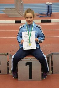 Bei den Mehrkampfmeisterschaften der Leichtathleten holt sich Sanna Schramm aus der 5a nicht nur den Titel im Dreikampf in ihrer Altersklasse, bestehend aus 50m, Weitsprung und 800m, sondern stellt auch einen neuen Sächsischen Hallenrekord über 800m in der Altersklasse 10 auf.