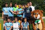 Gustav Gombos und Aaron Roscher (6. in der M15 aus der 8a) gewinnen auch noch die Mannschaftswertung im Mehrkampf der U16 gemeinsam mit Bruno Sommerfeld, dem Titelträger der M15, von der Sportoberschule.
